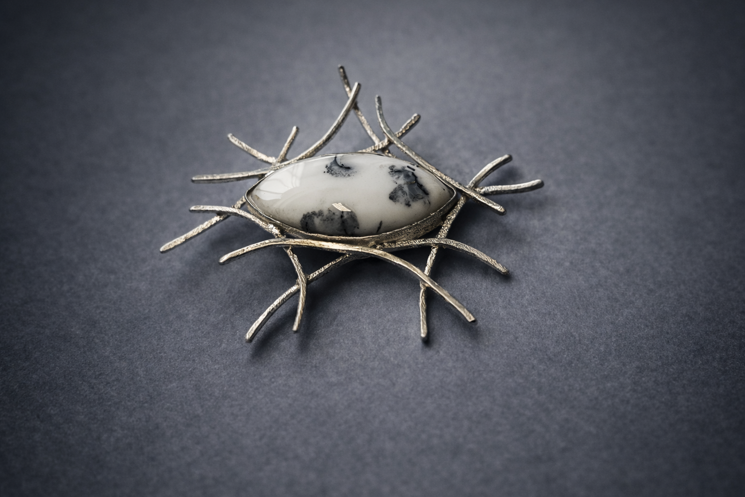 Joalharia escultórica em prata com pedras naturais